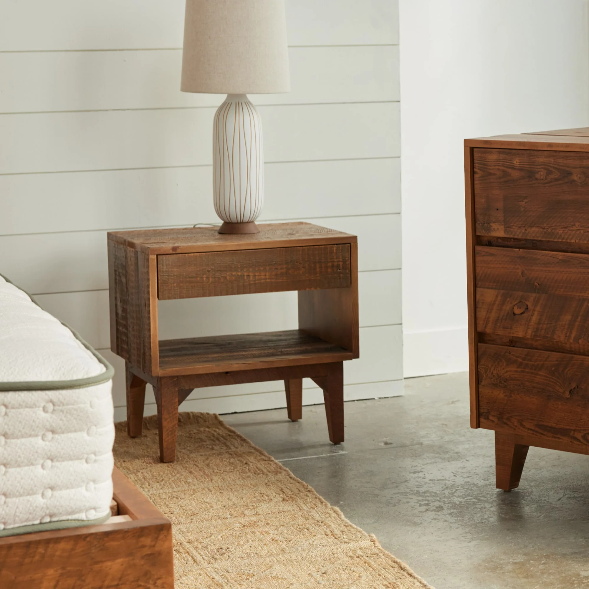 Our Natural Wood End Table is handcrafted in ourĀ Los Angeles woodshop from reclaimed wood with a "rustic raw" finish and a zero-VOC sealant. Part of our Natural Wood Furniture Collection, the Natural Wood End Table pairs perfectly with our Natural Wood Bed Frame and Natural Wood Dresser.